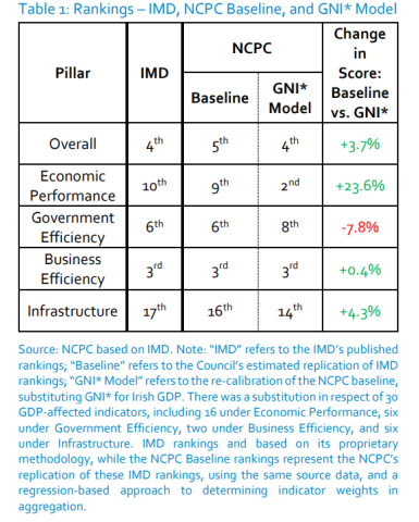 However, the adjustment does not drastically alter the view of Ireland’s competitiveness, while the NCPC cautions that GNI* is “not a universally appropriate substitute for GDP in this index”.