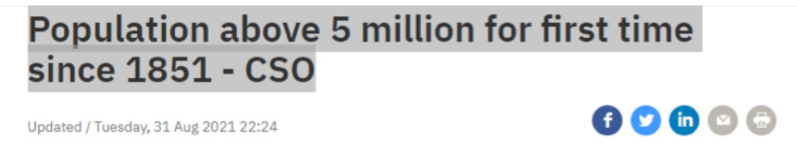 As is the trumpeting of this figure by John Fitzgerald of the Irish Times as evidence that “This week’s population estimates from the CSO showed Ireland’s population over 5 million for the first time in 170 years.”