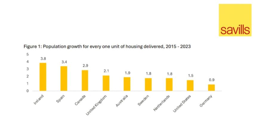 The report from Savills Ireland analysed the scale of the housing crises in an international context, and found that Ireland is an outlier in the severity of its’ housing supply challenge.