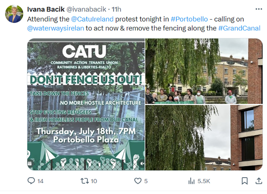 Among those who made it known that they were attending were Dublin Bay South TD and leader of the Labour Party Ivana Bacik. She was happy to add her voice to those left groups and NGOs for the fencing to be taken down.