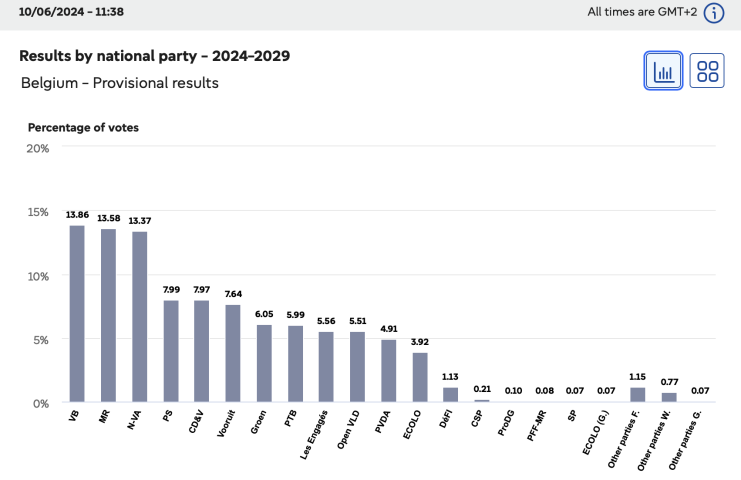 In Belgium the right-wing New Flemish Alliance (N-VA) led by Bart De Wever was the biggest winner with 13.37% of the vote leaving the party with 3 seats.