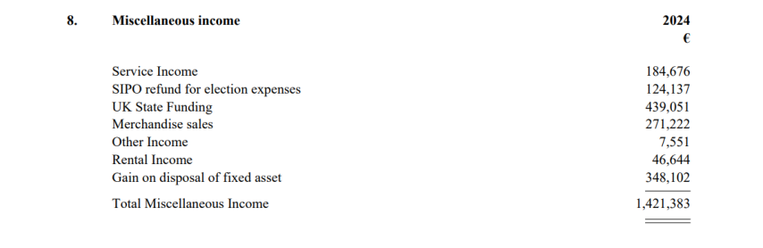 The funding, listed under “miscellaneous income” for 2024, is likely derived from the party’s Northern organisation, which is eligible for ‘representative money’, even though Sinn Fein has an abstentionist policy as a part of which its MPs refuse to take their seats in the British Parliament.