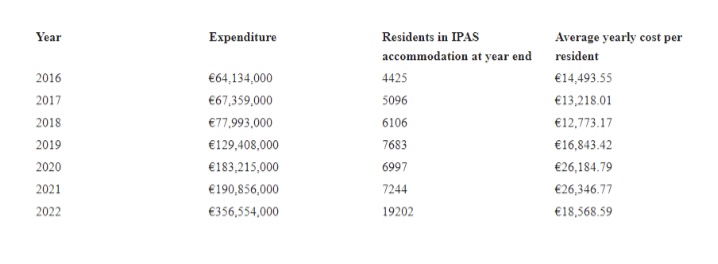 With 25,510 people being accommodated by IPAS up to the end of last week, current costs for 2023 alone, assuming that the average costs remain the same, will amount to more than €474 million.