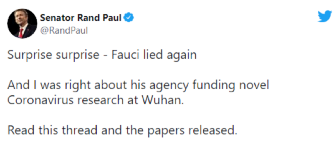 All of this aside, the latest information has contributed to the political controversy surrounding what took place in Wuhan. Republican Senator Rand Paul reacted yesterday by claiming that the FOI documents prove that NIAID Director Dr. Anthony Fauci “lied” to Congress when he denied that NIAID had, by granting EcoHealth, funded gain of function research into coronaviruses at Wuhan.