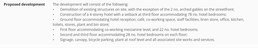 That was argued by the Rathgar Residents Association who wondered if it was a “shared living scheme disguised as a hotel.” They also claimed that “The 78 bedrooms are too small and cramped at 11 m sq. to 13.5 m sq. in size, and it is combined with shared working space.”