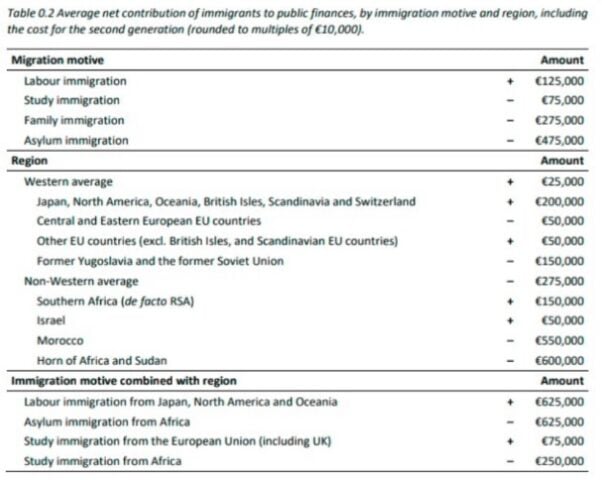 The study, titled “Borderless Welfare State”, was conducted by Dutch mathematician Dr. Jan H. van de Beek and it calculates the fiscal impact of mass immigration between 1995 to 2019.