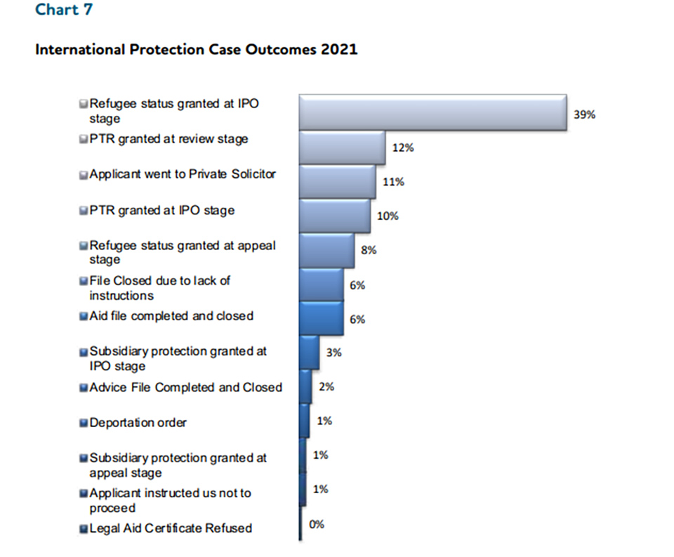 Statistics on the outcome of cases taken in relation to International Protection show a hugely favourable outcome for those making claims for Free Legal Aid.
