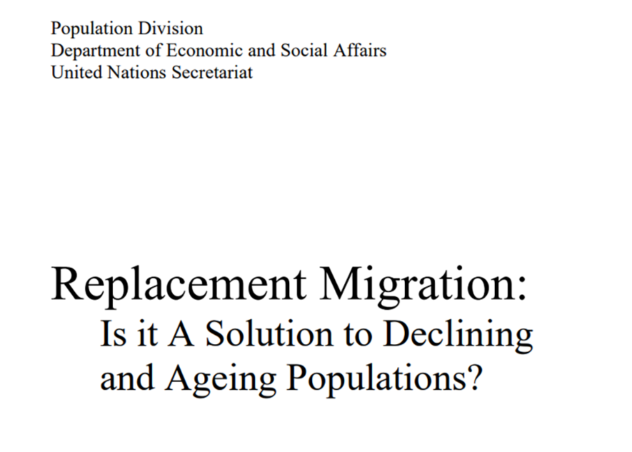 It may come as a surprise then that the concept of population replacement did not originate with Camus and that in March 2000, the Population Division of the United Nations Secretariat published a report entitled Replacement Migration: Is it a Solution to Declining and Aging Populations?