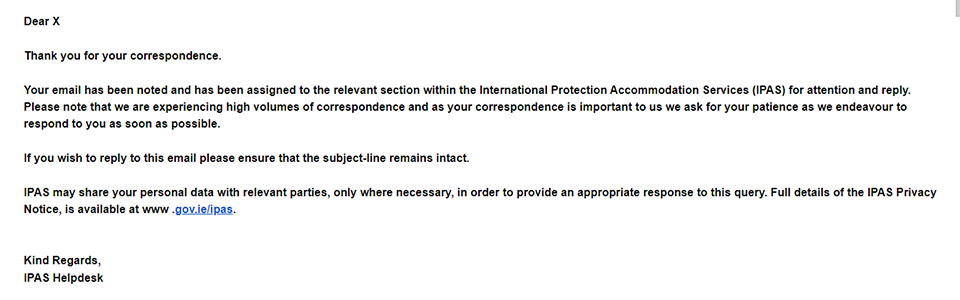 Gript contacted the Department to inquire as to who the “sister company” in question is. We received what I – in a Drama Queen moment – consider to be a Kafkian missive addressed to “Dear X” from the IPAS Helpdesk. It assures me that the query has been passed on to the “relevant section” but that I probably ought not to expect any early response due to their being busy. Gript has been informed that at least one other query regarding the “sister company” received no response at all. Not even a “Dear X” blow off.