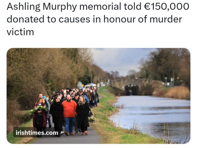 Sacred Heart School Tullamore, where Ashling had attended posted that yesterday “our students walked together in remembrance, retracing the final steps of Ashling Murphy along the Grand Canal on the fourth anniversary of her passing.”