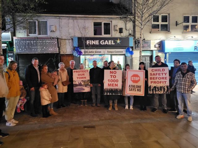 On Sunday, the Athlone Stands Together group protested the Fine Gael office in Athlone town saying that the needs of Irish people were not being met even as the site Lissywoolen was being developed.