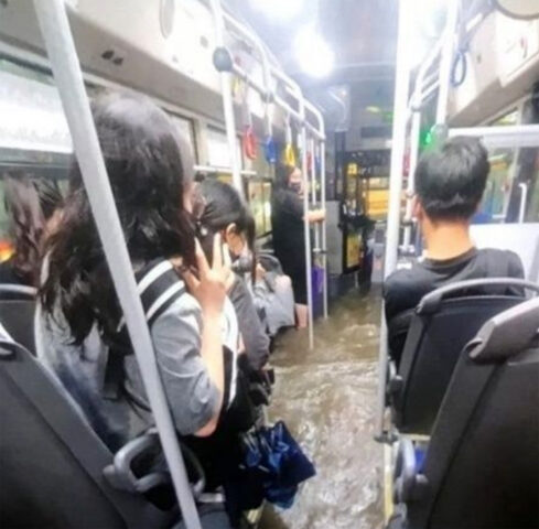 Rainwaters also gushed onto a bus full of passengers.