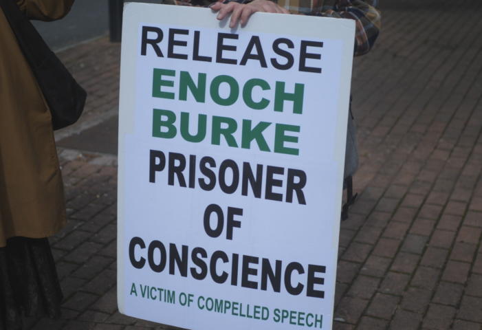 When Burke was asked to refer to a gender “non-binary” student by “they/them” pronouns, he refused, saying that to do so would compromise his religious beliefs as a Christian. For this he was suspended from his job as a History and German teacher at Wilson’s Hospital School, Co. Westmeath. In addition, a High Court injunction ordered him to stay away from the college. He chose to violate this injunction, going to the college anyway, and was subsequently arrested and jailed.