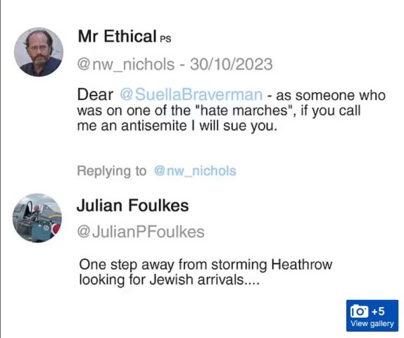 Ian Austin, a former Labour MP, has also been investigated for calling Hamas “Islamist”, while Julie Bindel, the feminist writer, was visited by police after a transgender man reported her gender-critical tweets as an alleged “hate crime”.