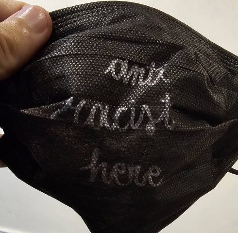 The masks in question were Covid-19 masks with the words “Anti-Racist Here” on the front.