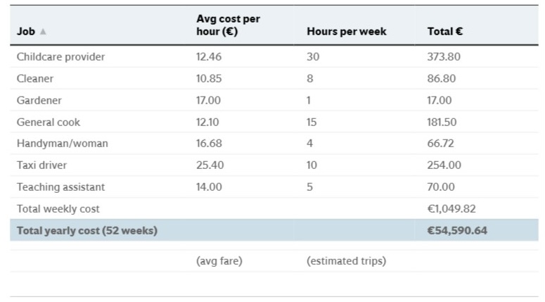 The survey of 1,000 adults estimated the potential salary of a stay-at-home parent at an average of €30,547 in 2023, an increase of €2,087 or 7.3% compared to 2022, the report said.