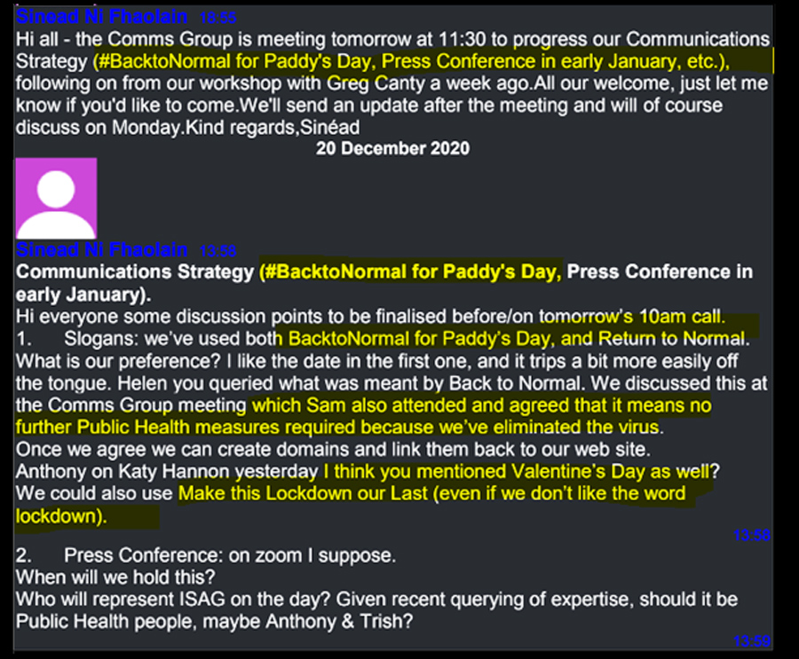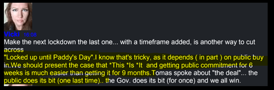 Again, this is a plan to mislead the public about what the Covid Zero people actually believe. How does “back to normal by Paddy’s day” square with their private belief that lockdown would have to continue, even after the vulnerable were vaccinated?